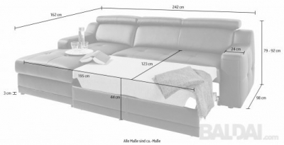 Išmatavimai 162x242cm. aukštis nuleistom/ pakeltom pagalvėm 79/92 cm, daugiau išmatavimų nuotraukoje.