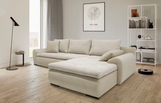 Kampas turi miegamą funkciją ir patalynės dėžę,keičiama kampo pusė. Ilga gulima vieta